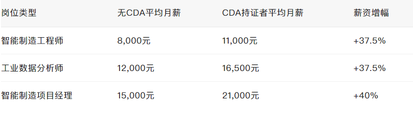第三,拓宽职业成长通道 CDA证书获得包罗华为、海尔、三一沉工等智能制制领军企业的承认,持证者可正在工业大数据阐发、智能系统优化、数字化处理方案等多个标的目的寻求成长,实现从手艺施行岗向手艺办理岗的逾越。
