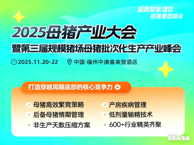 正在此布景下,聚焦母猪财产精益升级的行业嘉会即将启幕——猪很多多少网、猪很多多少科技无限公司将联袂中国畜牧兽医学会动物繁衍学分会、中国农业大学等权势巨子机构,于2025年11月20-22日正在福建省福州市举办“2025母猪财产大会暨第三届规模猪场母猪批次化出产财产峰会”。本届大会以“新质赋能增效・办理沉塑降本”为从题,批次化出产中的设备适配、效率提拔等痛点,而做为晚宴结合冠名单元的南昌智牧机械设备无限公司(以下简称“南昌智牧”),将携适配规模化、智能化养殖的焦点设备,为行业带来“设备赋能精益办理”的实和处理方案。